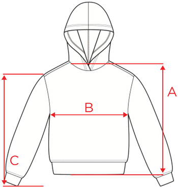 Size | Body Length (A) | Chest Width (B) | Sleeve Length (C) |